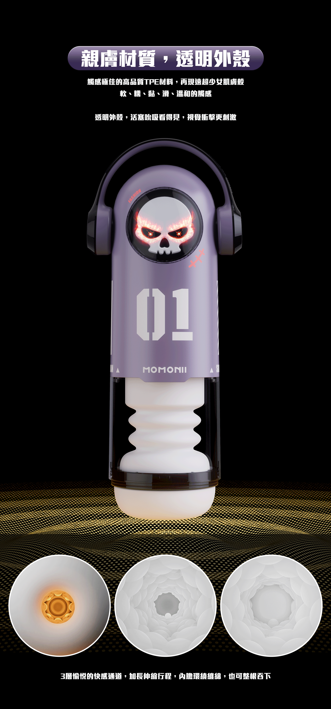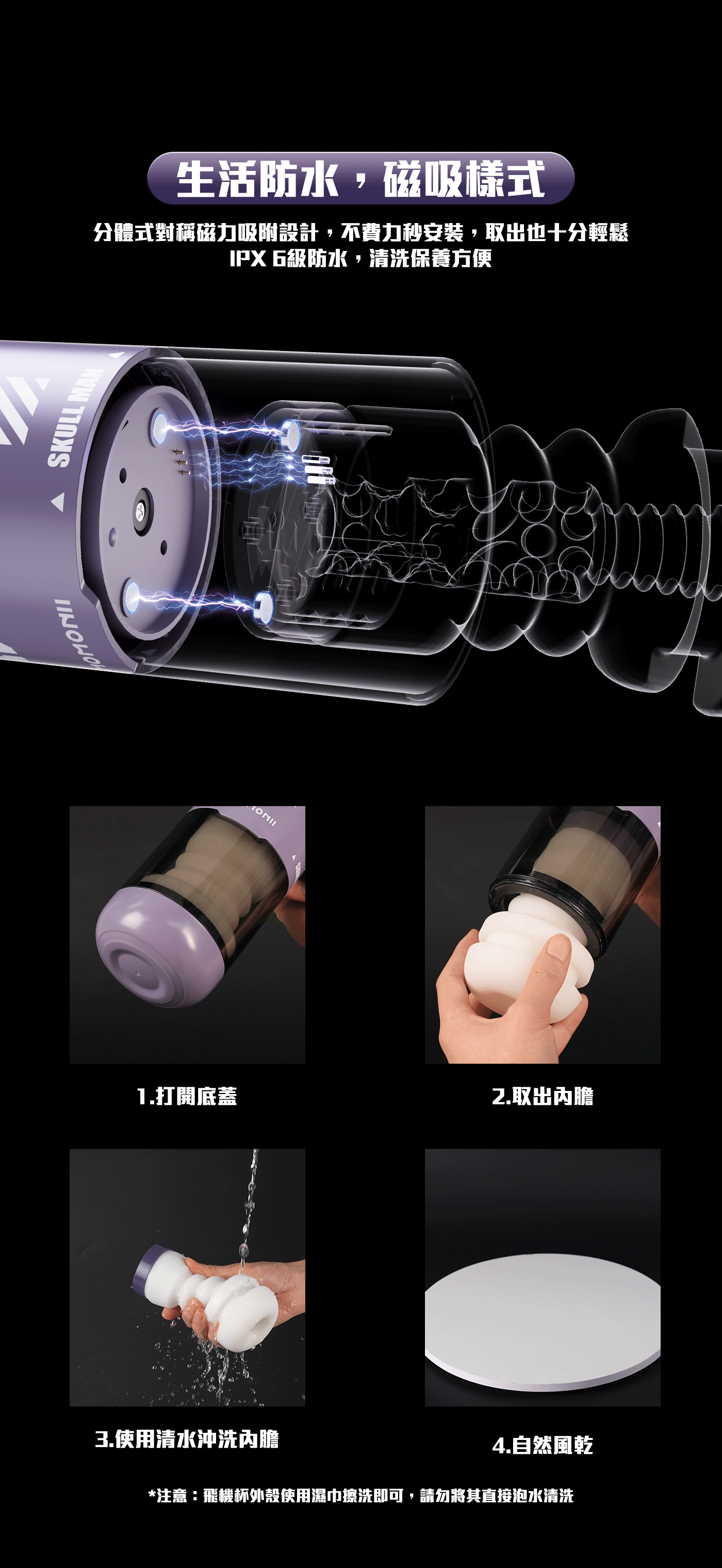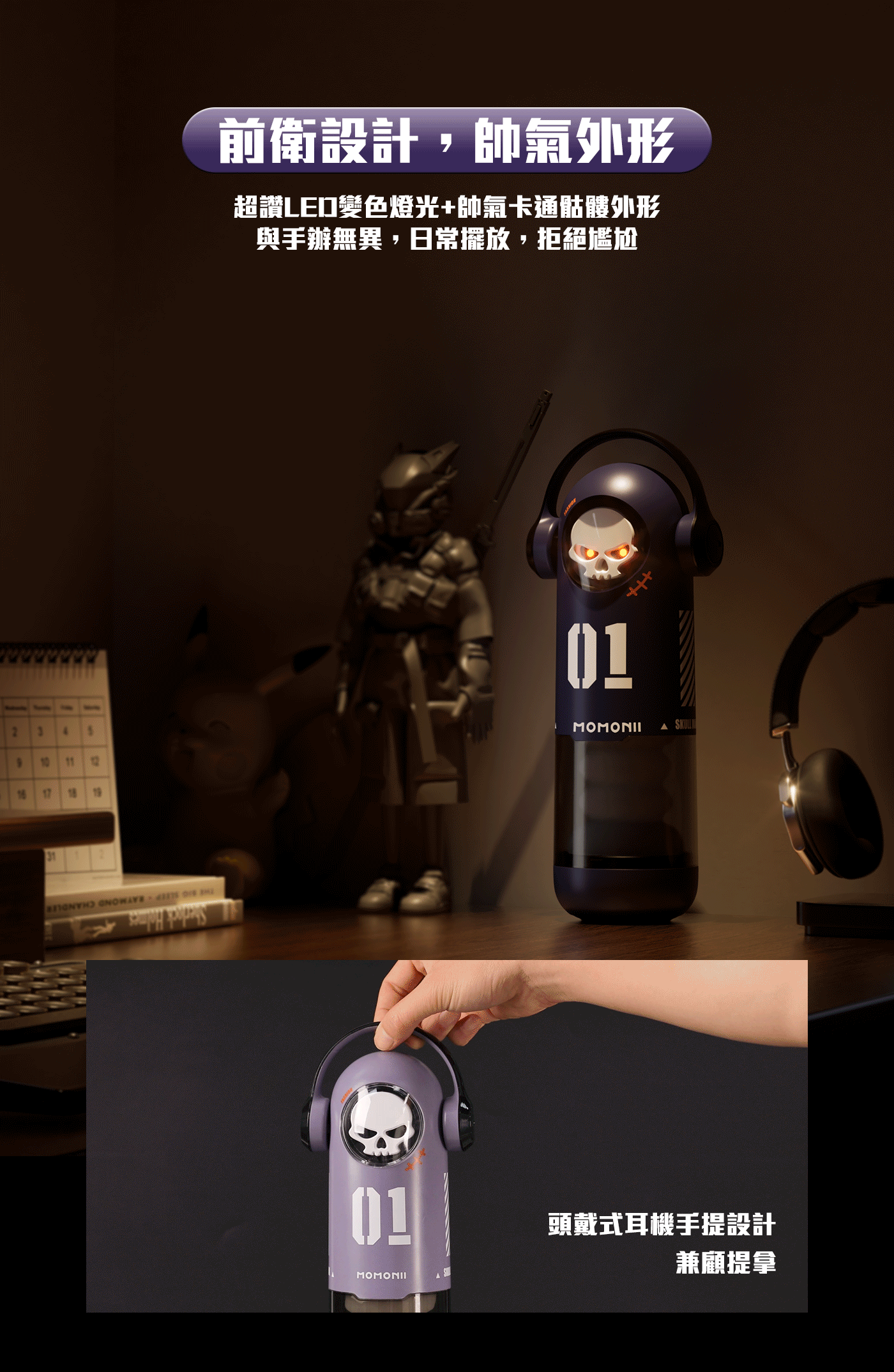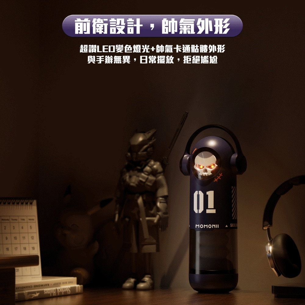 ✨外型吸睛:可愛卡通骷髏 × 變色 LED,半透明機身,活塞吮吸一目了然