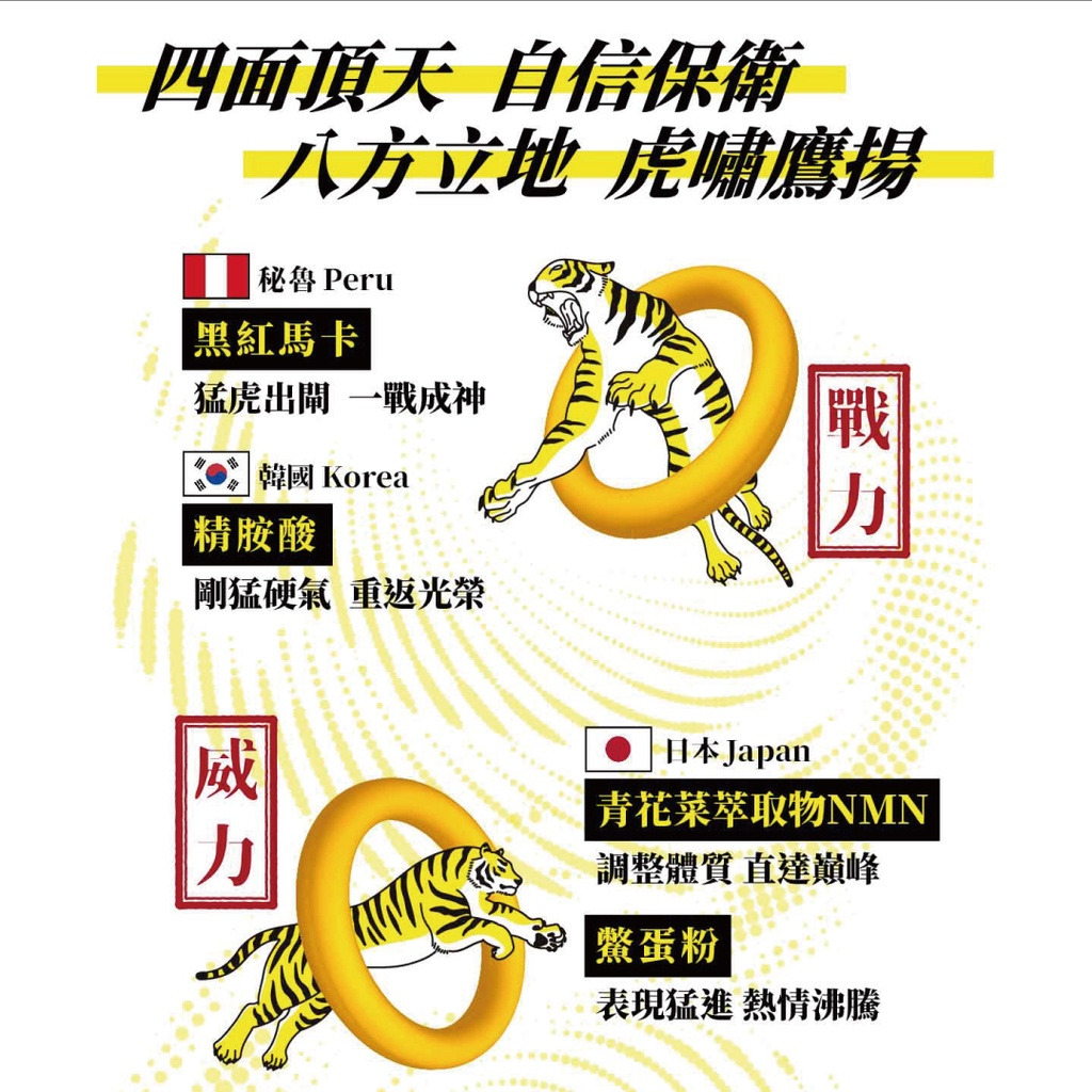 NMN馬卡 嚴選秘魯 珍貴馬卡虎虎生威 十分帶勁獨家添加NMN 就是要你夠硬氣!! ♠真男人絕對首選♥頂規黑馬卡含量達80%♦一舉成名95%滿意度♣多國專利 威猛認可