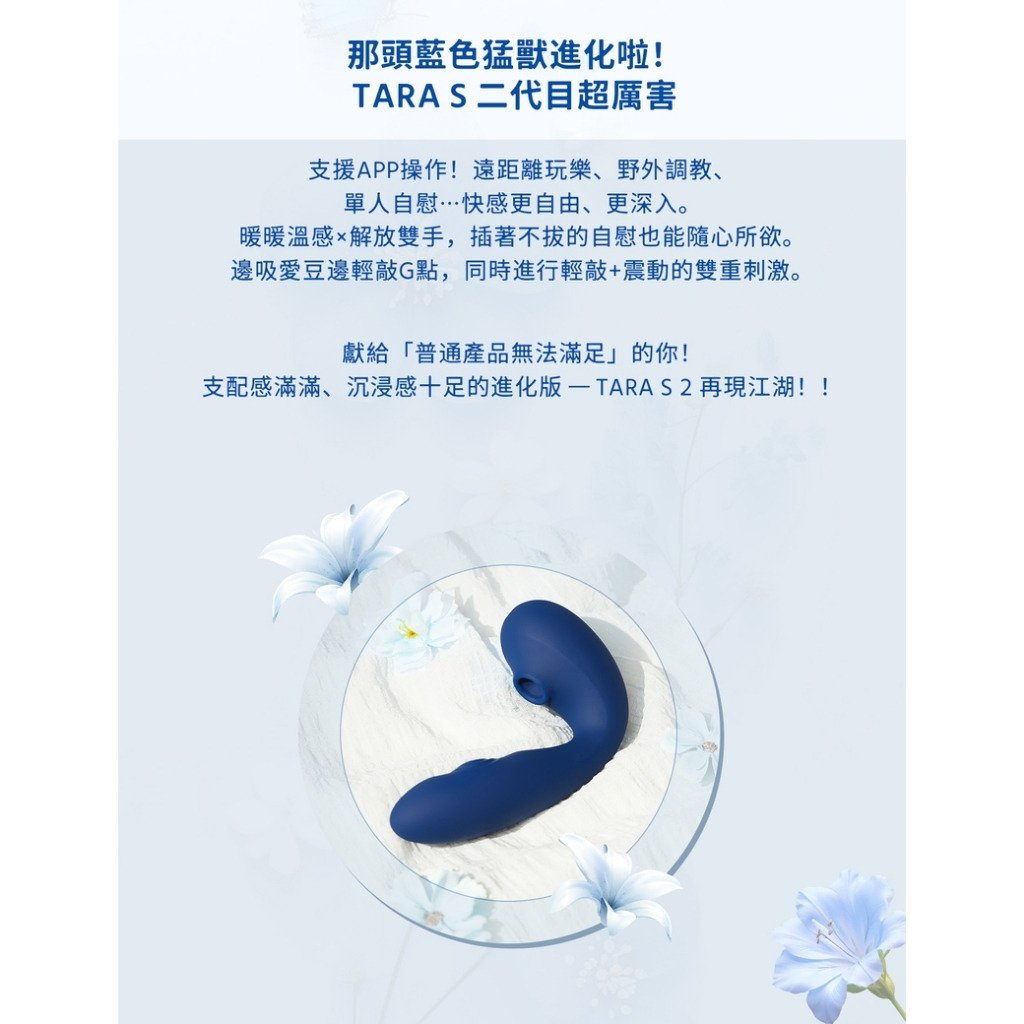 【ToyCod Tara S 2代 吸吮震動兩點刺激 App遙控雙頭龍 電動按摩棒 】
