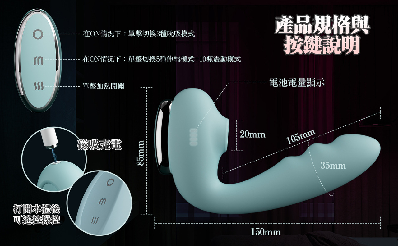 🌪️ 吸吮/💥 拍打/⚡ 震動/🔥 加熱/📱 遠程操控