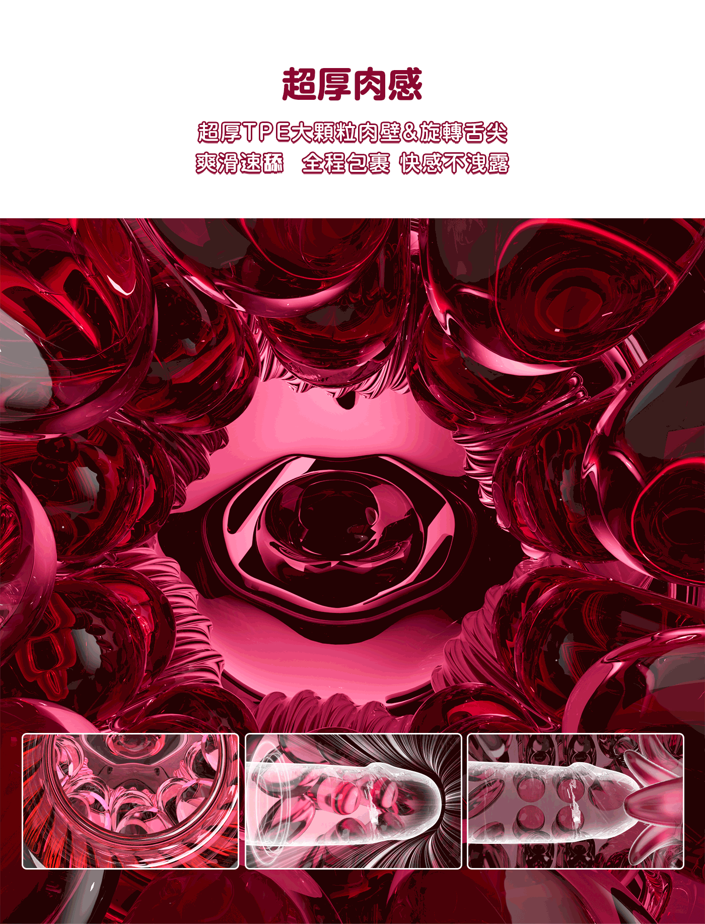 超厚肉感:超厚TPE大顆粒肉壁,全程包裹,快感不洩露。