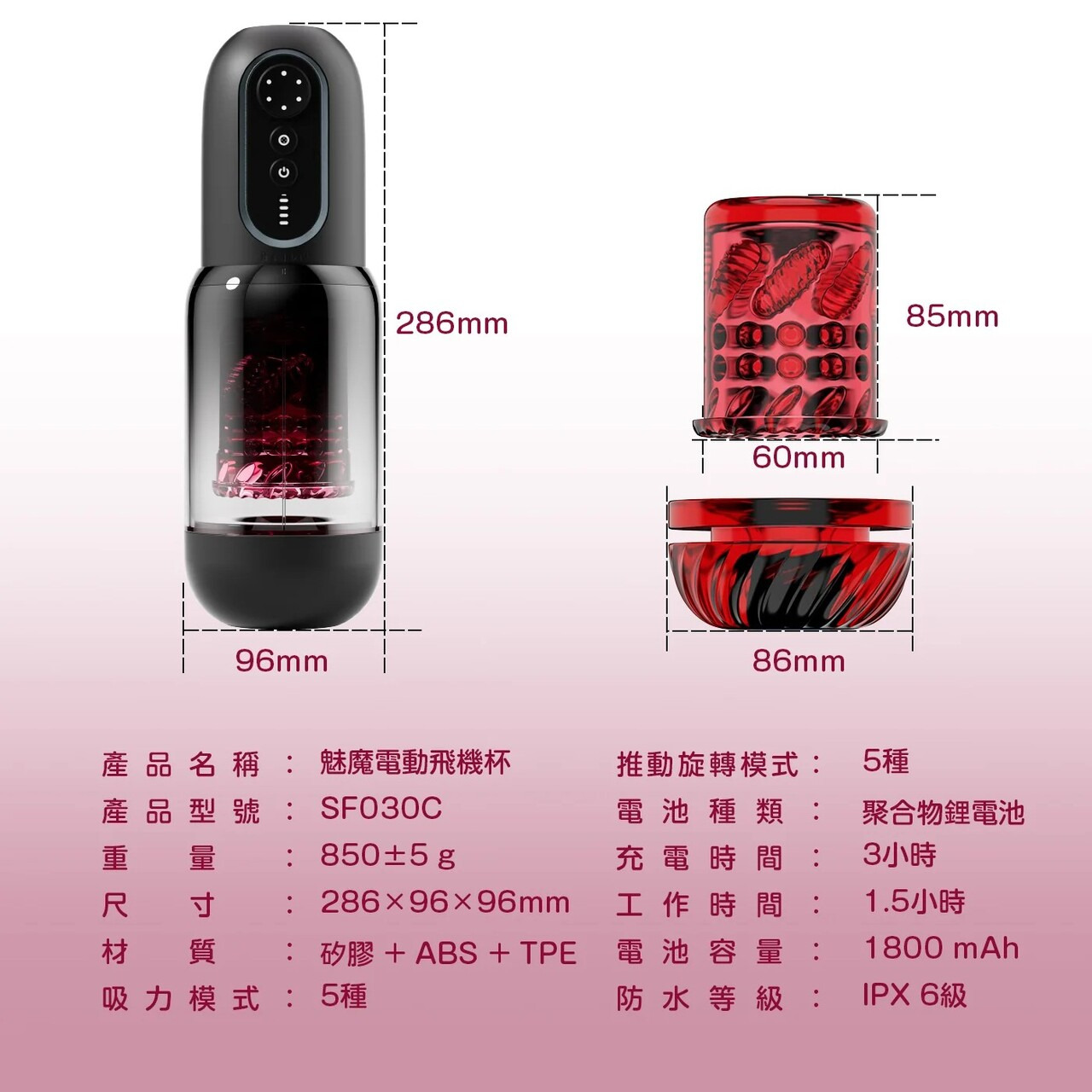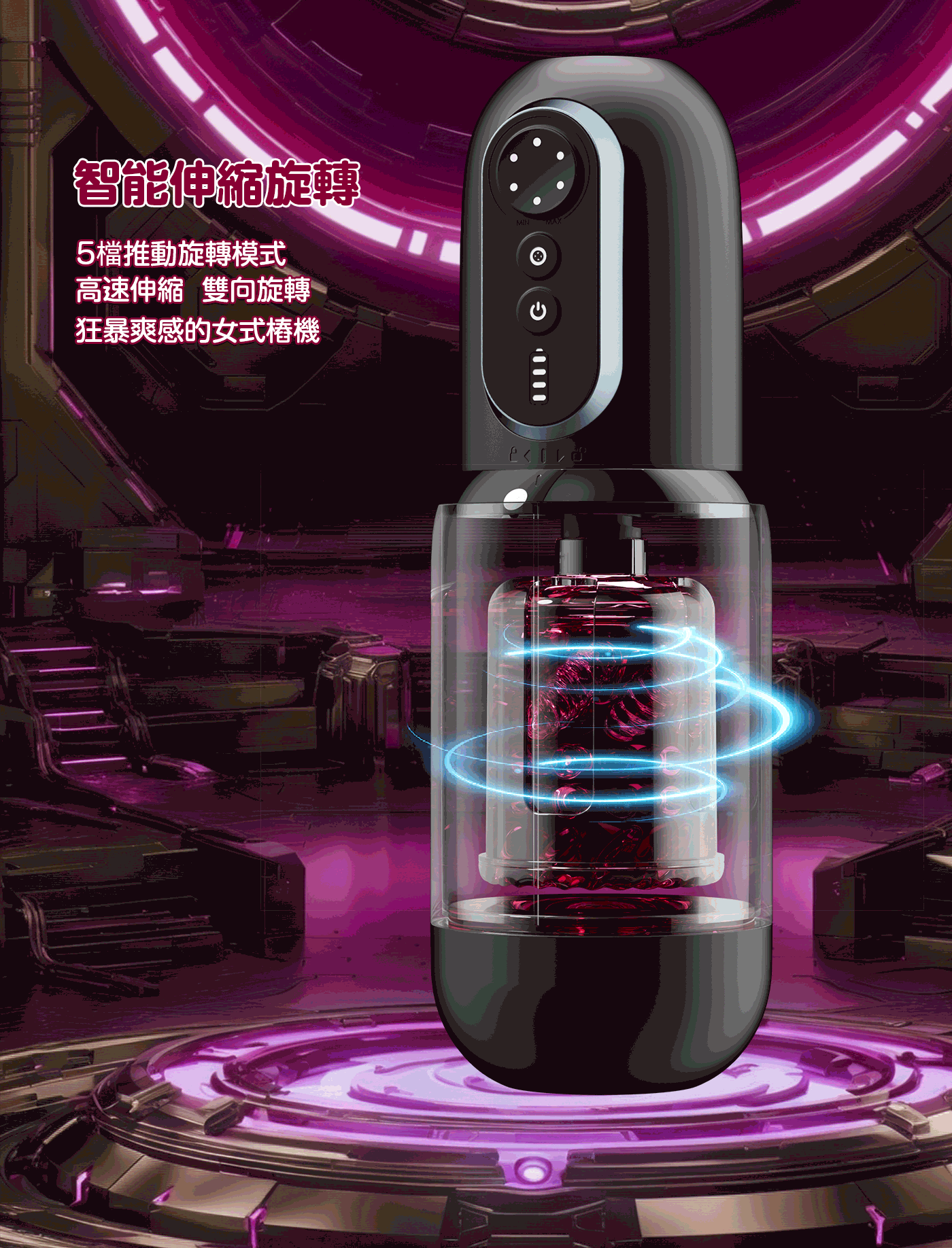 智能伸縮旋轉:吸力模式5種,推動旋轉模式5種,高速伸縮,雙向旋轉,狂暴爽感的女式樁機。